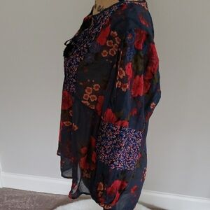 NWOT Chic boho blouse with vibrant floral patterns. Features a mix of red and blue hues. Perfect for casual outings.