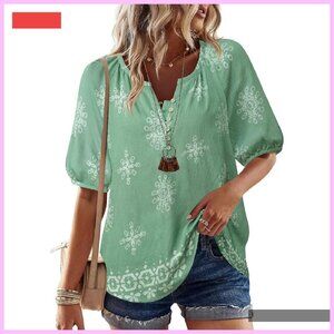 Floral Boho Button Down Shirt V-Neck Short Sleeve Blouse Casual Summer Top