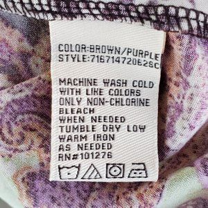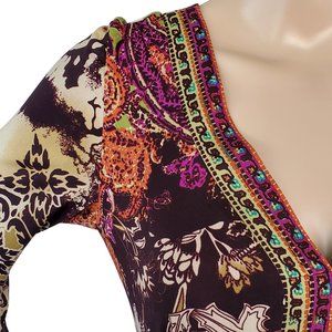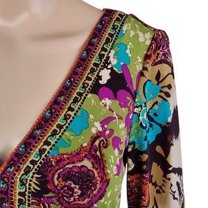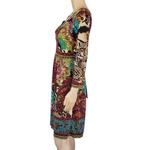 Floral Boho Dress Women's S Knit Stretch V Neck Tie Long Sleeve Brown & Purple