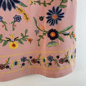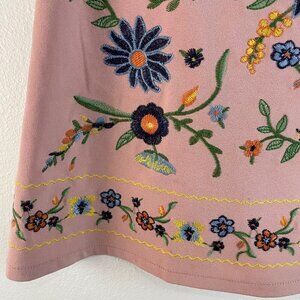 Floral Boho Embroidered Mini Skirt. Size Medium. Gorgeous floral embroidery enhances the front of this skirt. Left side invisible zipper. Unlined. Excellent preowned condition.