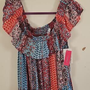 New Floral Boho Maxi Dress Xhilaration S-XXL Smocked Off Shoulder Pockets Front Slit