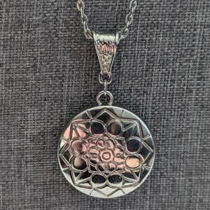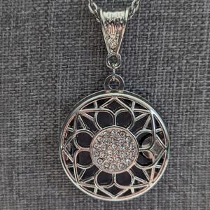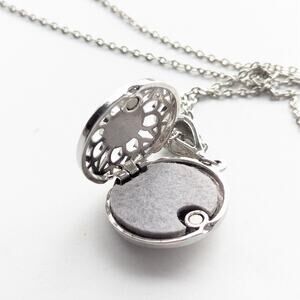 Floral Boho Natural Silver Tone Filigree Essential Oil Locket Pendant Necklace