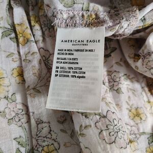 Romantic and feminine American Eagle blouse featuring a soft pink, yellow, and green floral print. Designed with a flattering square neckline, gathered waist, and ruffled hem for that timeless boho-meets-cottagecore feel. Lightweight woven fabric with long sleeves and elastic cuffs perfect for layering through any season.