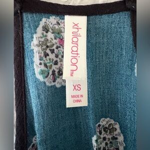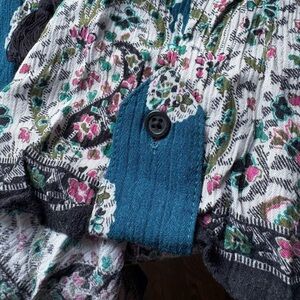 This romper is perfect for summer, festivals, beach etc. Fabric is lightweight & gauzy with buttons and adjustable straps (in back). In great condition!