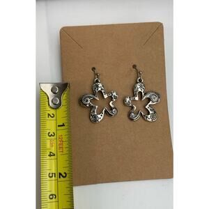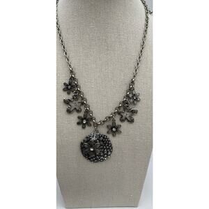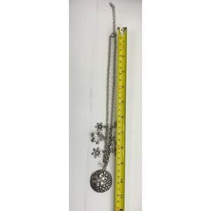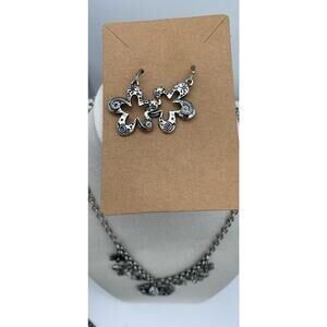 Floral Boho Silver Tone Earring And Charm Medallion Necklace Matching Set