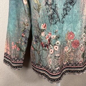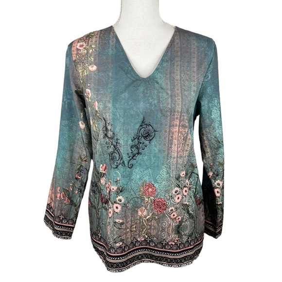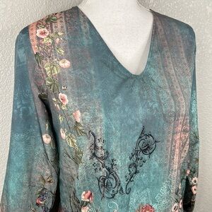 Floral Boho V-Neck Long Sleeve Top Size Small