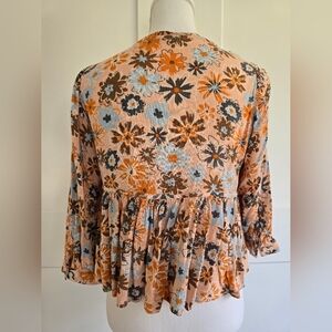Floral Boho Women's Top - Orange and Brown