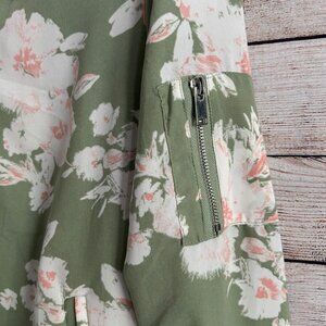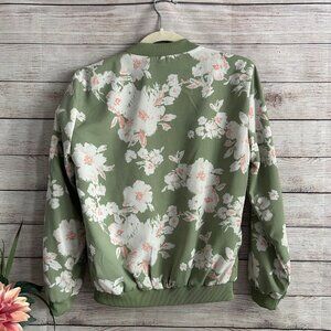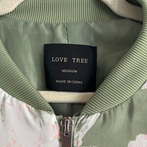 Women's Love Tree floral patterned bomber style jacket. Green in color with floral pattern/ design. Size M. Zipper closure and pockets, fully lined. Preloved and in great condition- please see photos for signs of wear/ wash.
