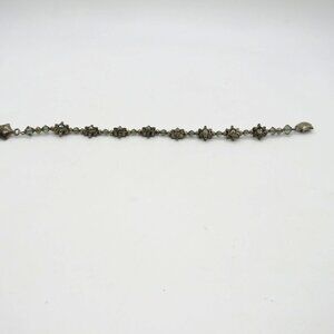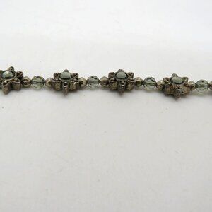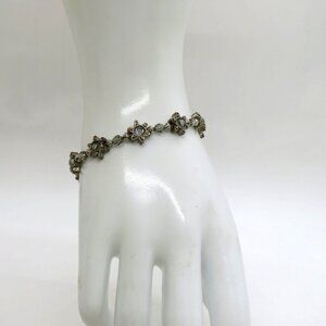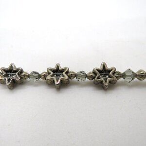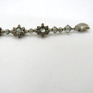Floral Bracelet Silver Tone Gray Crystal Bead Star Accents Magnetic Closure - Preowned