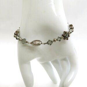 Floral Bracelet Silver Tone Gray Crystal Bead Star Accents Magnetic Closure