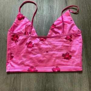 Floral Bright Pink Crop Tank Size Small Adjustable Straps Stretchy Material