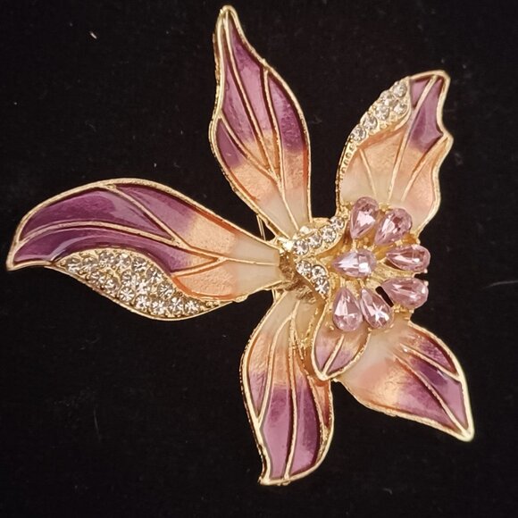 This brooch is enamel with rhinestones accents!