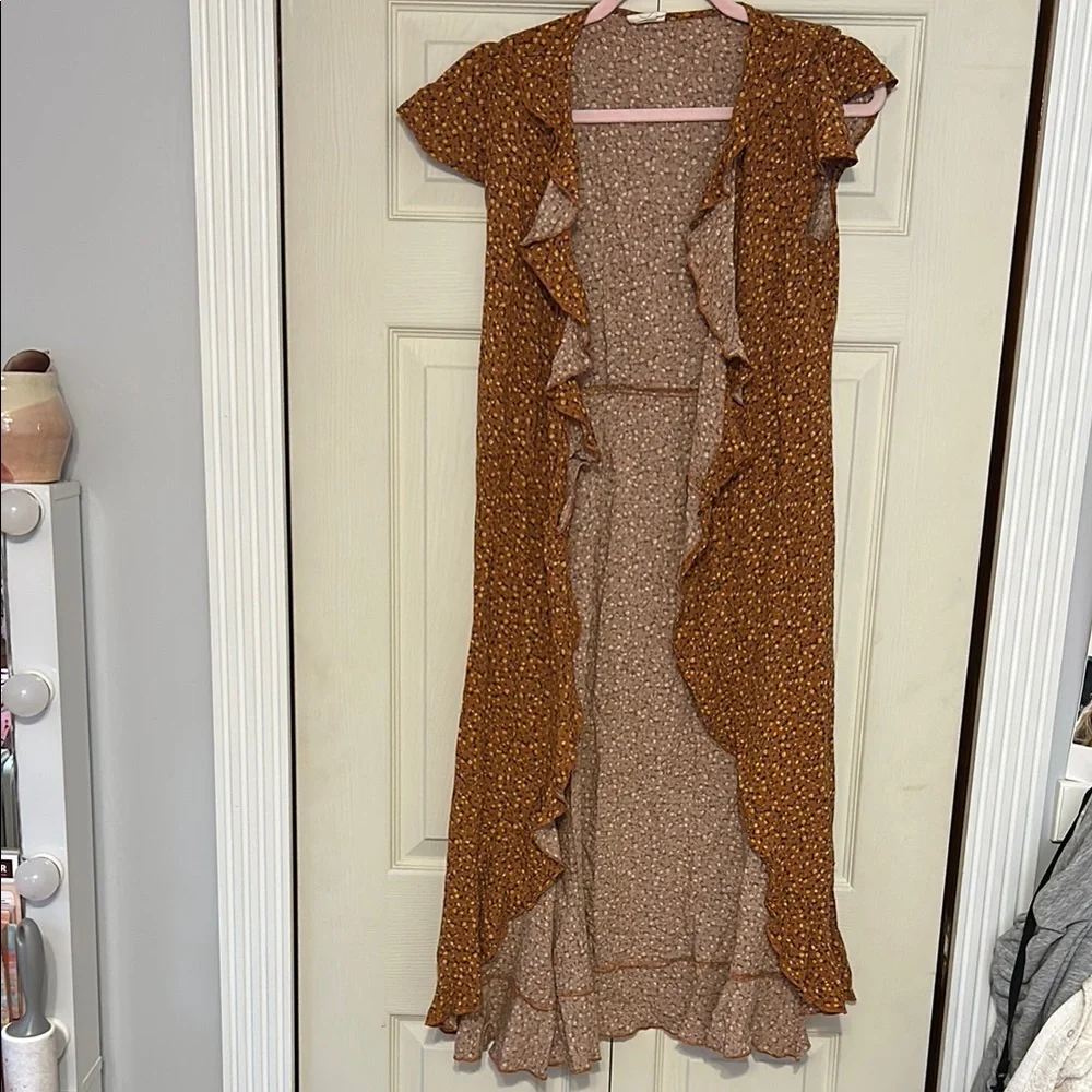 Embrace elegance with this floral brown ruffle. Perfect for any occasion to throw on -gently used -non returnable