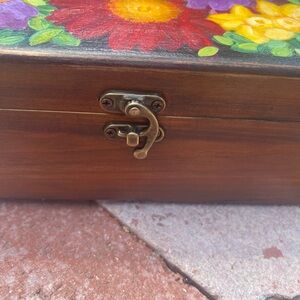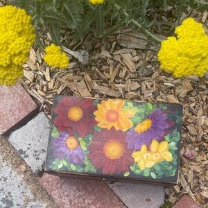Floral Burst Art Painted Sewing box - Red, Yellow, Purple painted floral box.