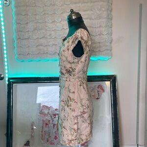 La Vie Rebecca Taylor light pink denim floral patterned dress midi length, NWOT