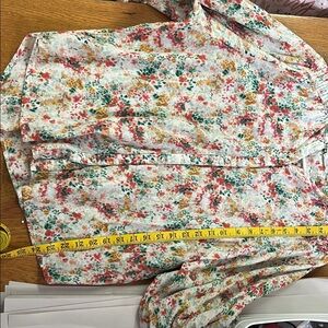 This floral button-up blouse features a vibrant mix of colors, perfect for adding a pop of color to your wardrobe. The lightweight fabric and relaxed fit make it ideal for any occasion.