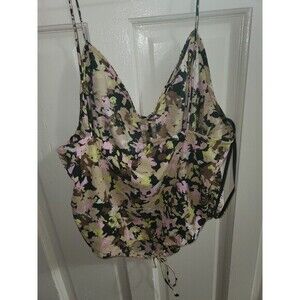 Floral Camo Print Spaghetti Strap Cami Top Drawstring Hem Summer Blouse XL