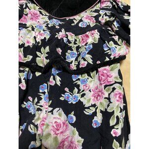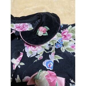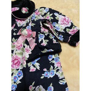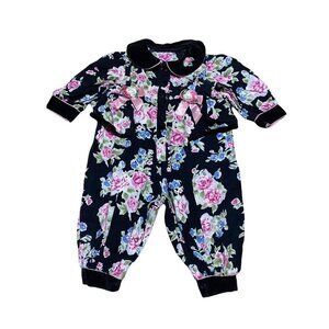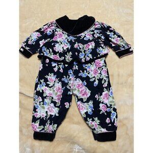 Floral Canvas Velvet Romper Buttoned Closure Bottom Jogger Vintage 6-9 Months