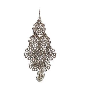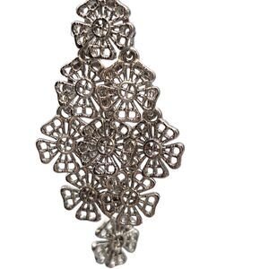 Floral Cascade Pierced Earrings Dangle Intricate Filigree Silver Tone Fashion