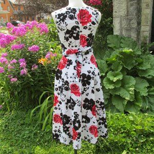 White, black and red floral dress, perfect for an elevated casual look, light and cool summer wear.