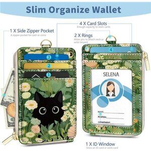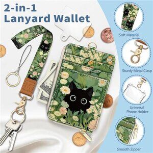 🧿Unique Original Design: The 2-in-1 wallet lanyards for id badges feature a unique leaf black cat design, letting you showcase your style while keeping your essentials secure, great for adding a playful yet practical touch to your everyday look. Package Included: neck lanyard x1, wrist lanyard x1, zipper id holder wallet x1, key-ring x2, phone tether tab x1