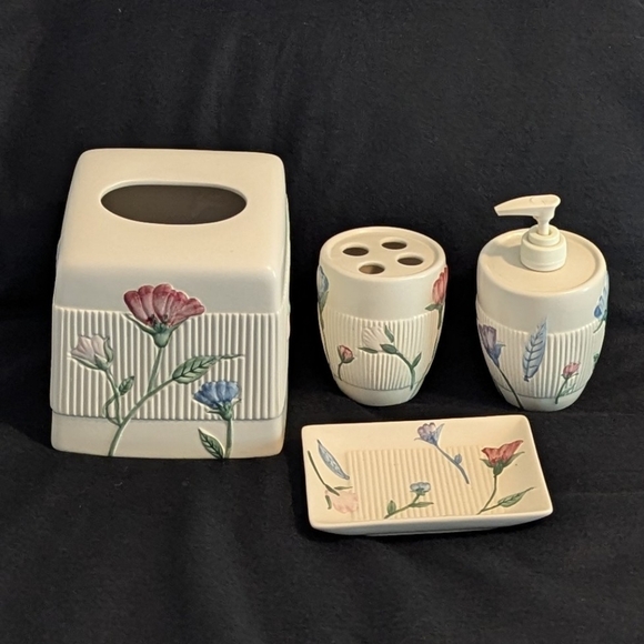 Floral Ceramic Bath Accessory Set