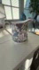 Elegant ceramic pitcher featuring a beautiful floral iris design in purple and blue hues, accented with gold trim. Perfect for adding a touch of sophistication to your table.