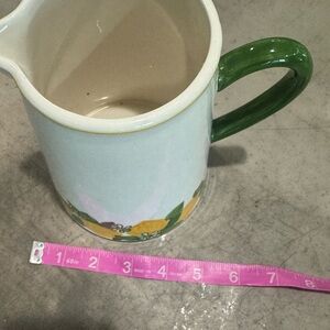 Floral Ceramic Pitcher with Green Handle