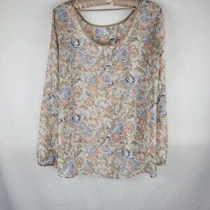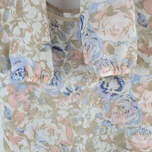 Floral Chiffon Blouse Pastel Rose Print Charming Charlie Long Sleeve Size L
