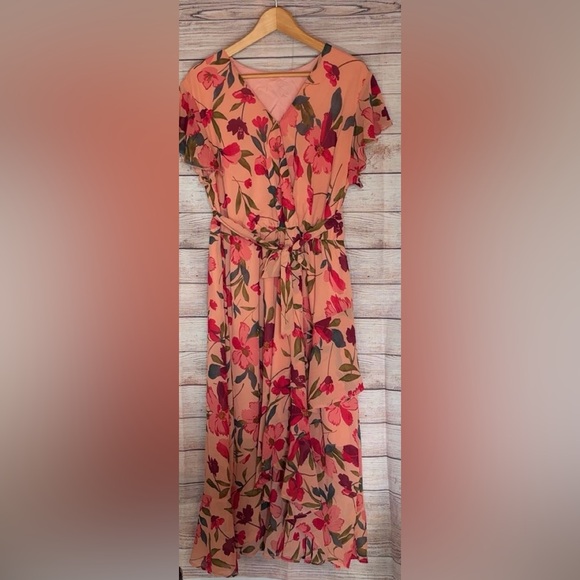 Beautiful Floral Chiffon Ruffle Hem Dress