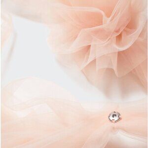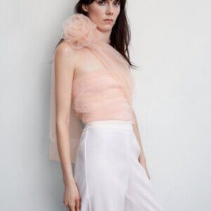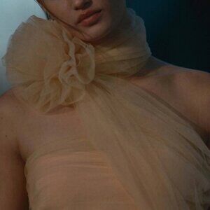 Gauze fabric. Tailored dress. Cropped design. Crossover design. Maxi flower. Strapless. Sleeveless. Festival Season.