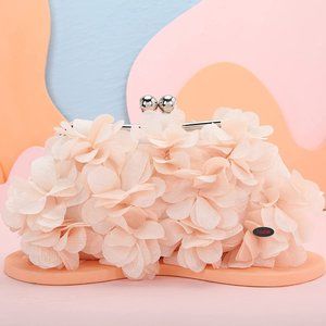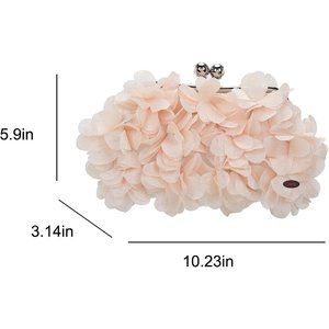 * Made of 3D satin flowers and crystals metal frame; Kiss-lock top closure; Interior: 1 slip pockets satin lining.