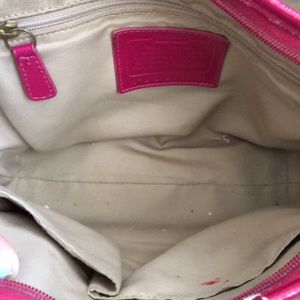 Coach Purse with removable side straps from 2016 Spring Collection. Handles are worn but can be easily repaired and inside purse has a small lipstick stain. Inside has pockets and slots. See photos for full item description