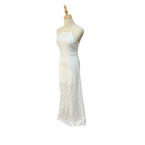 Floral Crochet Lace Up Overlay Maxi Side Slits Tassel Tie High Neck Maxi Dress S
