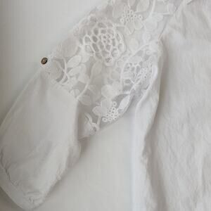 Floral Crochet Mesh Sleeve Cotton Button Down