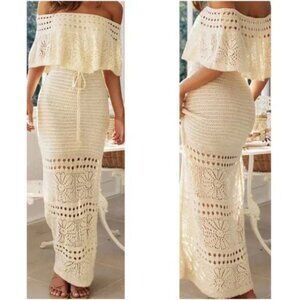 Floral Crochet Off Shoulder High Waisted Maxi dress