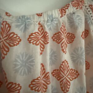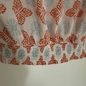 Floral Crop Smocked Top Puffy Flutter Sleeves Off the shoulder Med Cotton