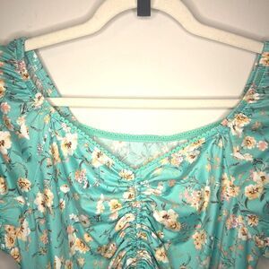 Floral Crop Top with Fitted Sleeves and Pull/Cinching in the Front XL