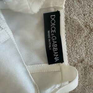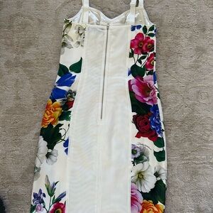 An iconic Dolce & Gabbana piece, this fitted sheath dress is adorned with a vibrant multicolor floral print against a white background. Crafted with impeccable tailoring, the structured silhouette flatters the body while wide straps add comfort and ease. Perfect for weddings, brunches, or elegant summer evenings, it’s a quintessential example of Dolce & Gabbana’s romantic aesthetic.