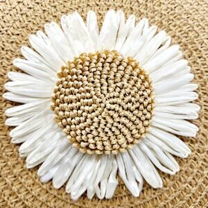 Floral Daisy Circular Rattan Woven Zip Closure Crossbody Shoulder Bag Unbranded