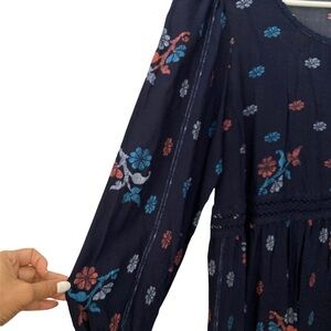 Floral Dark Blue 3/4 Sleeves Small/Medium Mini Dress BNWT