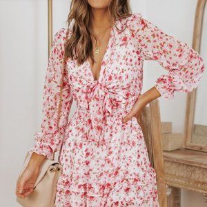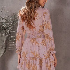 Floral Deep V Flounce Sleeve Mini Dress