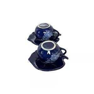 Floral Demitasse Teacup and Saucer Set of 2 Leaf Shape Saucer.