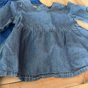 Charming set featuring a floral denim romper size 4 but runs small , blue Old Navy dress NWT size 3 and denim GAP shirt size 3 Perfect for casual outings.