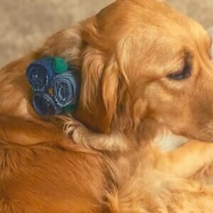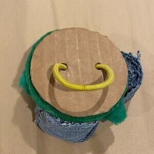 Handmade floral collar embellishment. Made from old jeans. Has an elastic band to slip onto any collar and able to wrap a couple of times to stay. Back is just cardboard to brace the floral arrangement and can’t be seen when worn.