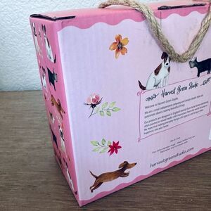 NWT set of 4 pink and white floral botanical dogs print ceramic espresso coffee cups.