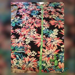 Adorable floral dress, looks great with black leggings! V-neck with pretty frills on the sleeves. 95% Rayon & 5% span.