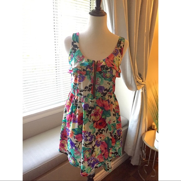 Colorful floral dress for a perfect Sunday brunch. Dress has a slip and loose fitting.