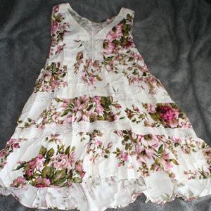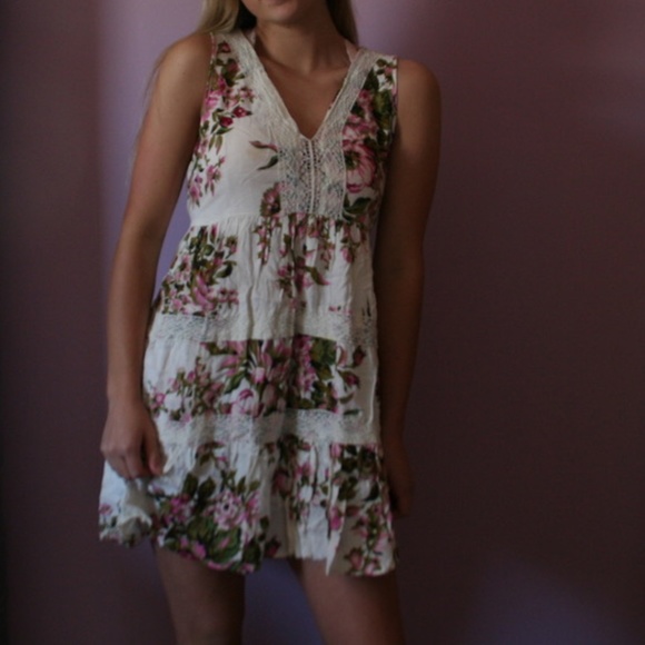 Pretty floral dress accented with lace, Its a large but runs a little small. Fits me well I just have only worn it once so I figured this dress deserves a new home!