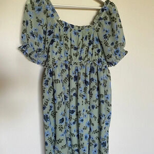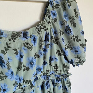 Floral Dress Blue and Green Summer mini- medium